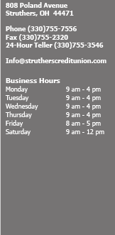At Struthers Federal Credit Union, we know your time is valuable. That’s why we offer multiple ways for you to access your credit union accounts.